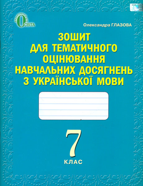 Зошит для тематичного оцінювання навчальних досягнень з української мови. 7 клас: навч. посіб. для загальноосвіт. навч. закл. /О. П. Глазова.