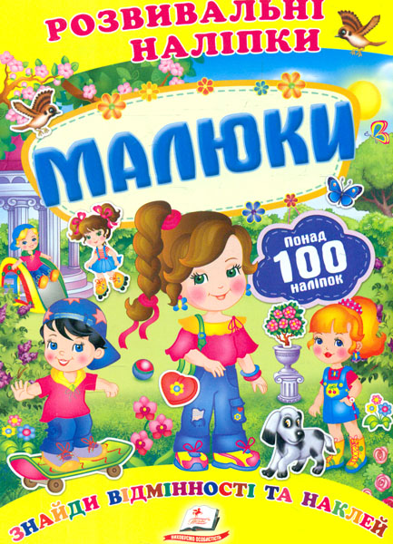 У цій невеликій, але дуже практичній і зручній для занять яскравій книжці — понад 100 розвивальних наліпок!Кожен розворот — захоплива гра «Знайди відмінності та наклей». Книжка цікава для дитини тим, що на малюнках вона гратиме в добре знайомі їй улюблені ігри. Хоча гра у книжці з розвивальними наліпками «Малюки» — не просто забавка. Стануть у пригоді і посидючість, і уважність. Наліпки треба клеїти на обидва боки розвороту. Для цього слід уважно порівняти всі деталі, потім наклеїти фрагменти, яких бракує. Обидва малюнки мають бути однаковими. Заняття з яскравими наліпками допоможуть малюкові розвинути:мислення; пам’ять; увагу; дрібну моторику рук. А створюючи яскравий світ і вигадуючи за малюнками історії, дитина розвине фантазію і творчу уяву.