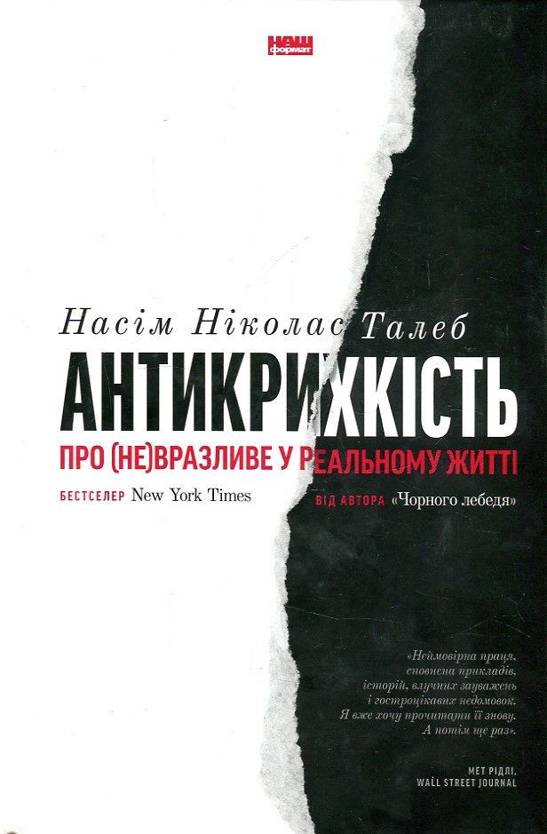 А от по «Антикрихкості» видно, що Талеб провів сяку-таку роботу над помилками (або редактори його змусили). В цій книзі вже набагато менше води і того, що автор вважає гумором. ЇЇ можна читати і без «Чорного лебедя», це самостійний твір, хоч і є за словами Талеба підсумком всіх його праць. Якщо ви до того нічого з автора не читали, це не завадить повністю осягнути текст. «Антикрихкість» написана цікаво і легко – десь на золотій серединці між цифрами і термінами, і «легким чтивом». Не скажу, що вона переверне ваше життя, але точно запустить мізки, змусить поглянути на багато речей під іншим кутом і дізнатися про опосередковано згадані в книзі ідеї більше.