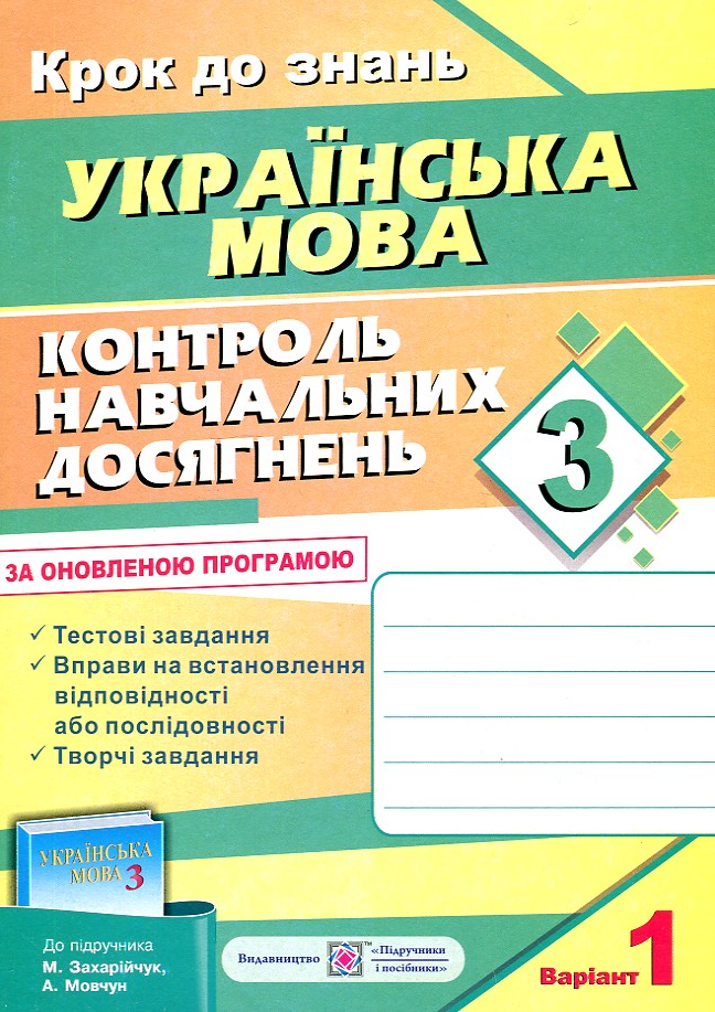 Зошит укладено відповідно до вимог оновленої чинної програми з української мови для 3 класу, «Орієнтовних вимог до контролю та оцінювання навчальних досягнень учнів початковоъ школи» і підручника Захарійчук М.Д. Українська мова : підруч. для 3 кл. загальноосвіт. навч. закл. з навчанням українською мовою / М. Д. Захарійчук , А. І. Мовчун. — К. : Грамота, 2013. Видання містить завдання чотирьох рівнів складності для контролю навчальних досягнень учнів.