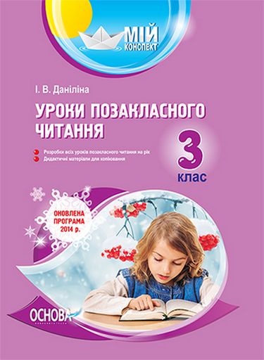 Посібник містить докладні розробки уроків позакласного читання у 3-му класі (17 уроків на рік), складені відповідно до вимог оновленої навчальної програми для ЗНЗ із навчанням українською мовою (у редакції 2014 р.) та змісту чинних підручників.