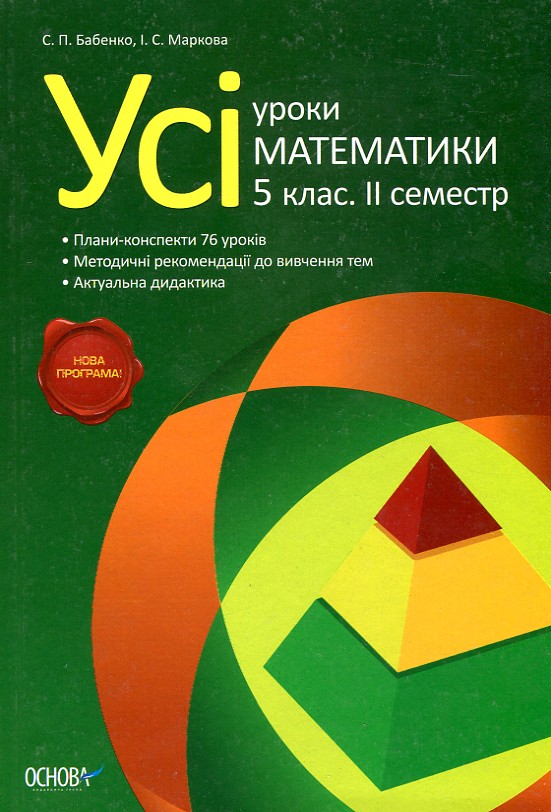 Детальні методичні рекомендації, різноманітні прийоми роботи, велика кількість усних вправ, широкий вибір форм перевірки знань, урахування вікових особливостей учнів — усе це відрізняє пропонований посібник від традиційних планів-конспектів та дає можливість його використання також учителями, які працюють за підручниками з математики для 5 класу (Істер О. С. Математика. 5 клас; Мерзляк А. Г., Полонський В. Б., Якір М. С. Математика. 5 клас). Посібник для вчителя нового покоління.
