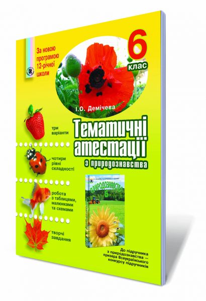 Тематичні атестації для 6-го класу загальноосвітніх навчальних закладів розроблені відповідно до вимог чинної навчальної програми з природознавства для 12-річної школи і є додатковим до базових підручників, зокрема до підручника Ярошенко О.Г. «Природознавство» 6кл.