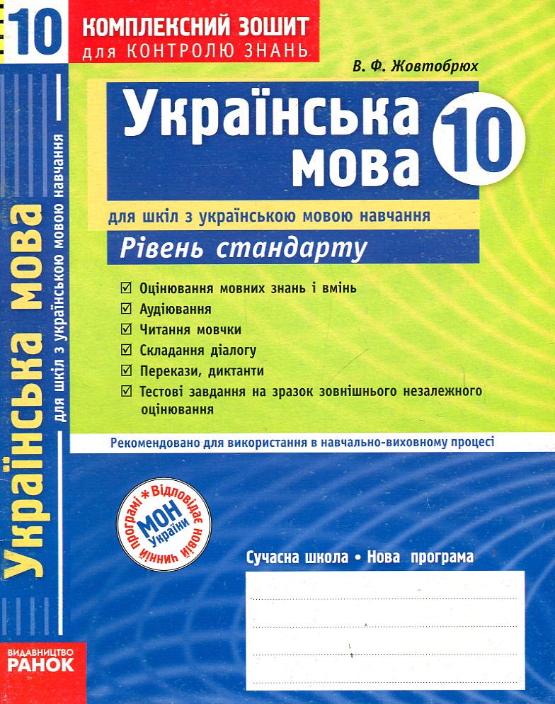 Українська мова. 10 клас. Рівень стандарту. Комплексний зошит для контролю знань (для шкіл з українською мовою навчання)