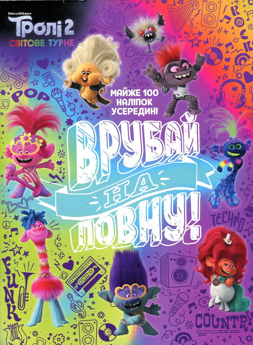 Зустрічай улюблених тролів у продовженні їхніх пригод - ''Світовому турне'' - на сторінках книжки-розмальовки. Усередині безліч цікавих завдань та сторінок для розфарбовування. Понад 30 яскравих наліпок. А на обкладинці на дитину чекає сюрприз - паперова фігурка троля зі ''Світового турне''.