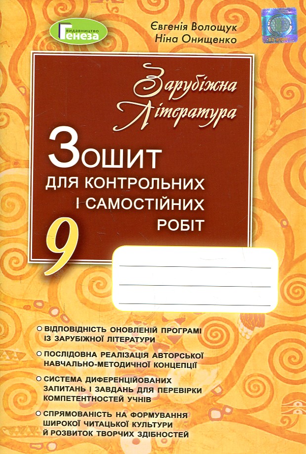 Зарубіжна література. Зошит для контрол.і самост.робіт. 9 клас 2020