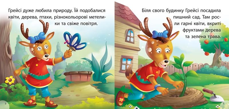 Грейсі — маленька захисниця природи. Вона вміє дбати про рослини та має чудовий сад. Але якось дівчинку спіткали неприємності. Що сталося у Грейсі, читач дізнається, прочитавши цю книжку. А після цікавої історії виконає творчі завдання для розвитку уваги.