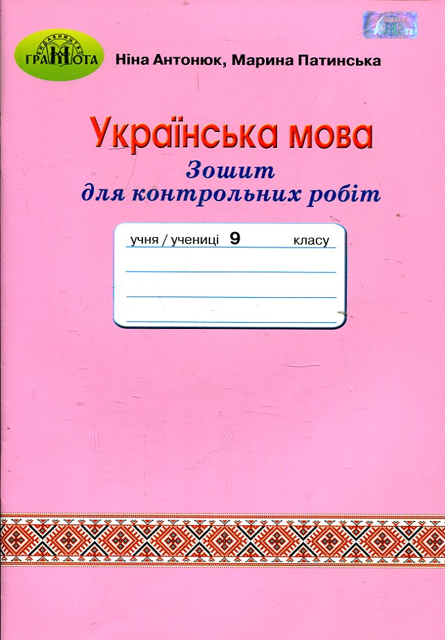 Зошит для контрольних робіт з української мови 9 клас. 2019