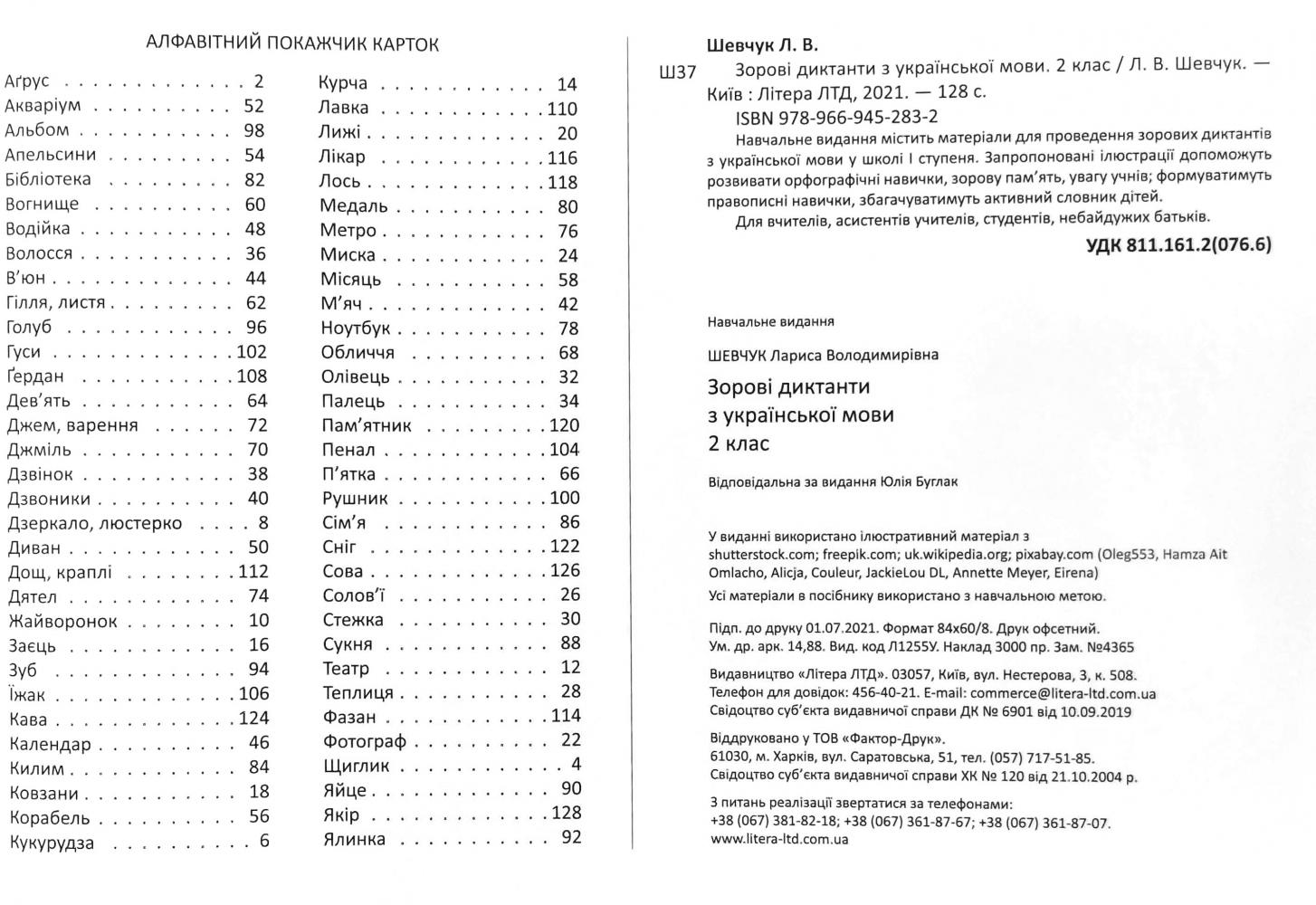 Навчальне видання містить матеріали для проведення зорових диктантів з української мови у школі І ступеня. Запропоновані ілюстрації допоможуть розвивати орфографічні навички, зорову пам'ять, увагу учнів; формуватимуть правописні навички, збагачуватимуть активний словник дітей.