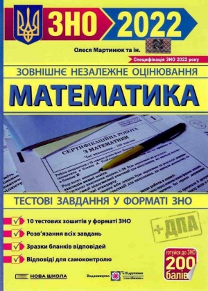 Мета посібника допомогти учням у підготовці до успішної здачі ЗНО та ДПА з математики. Збірник містить 10 варіантів по 32 тестових завдання, розроблених до НОВОЇ СПЕЦИФІКАЦІЇ 2022 року тесту з математики УЦОЯО. Зміст, структура та формат завдань аналогічні тим, що їх пропонують на ЗНО у 2022 році. До всіх завдань у посібнику подано рішення.