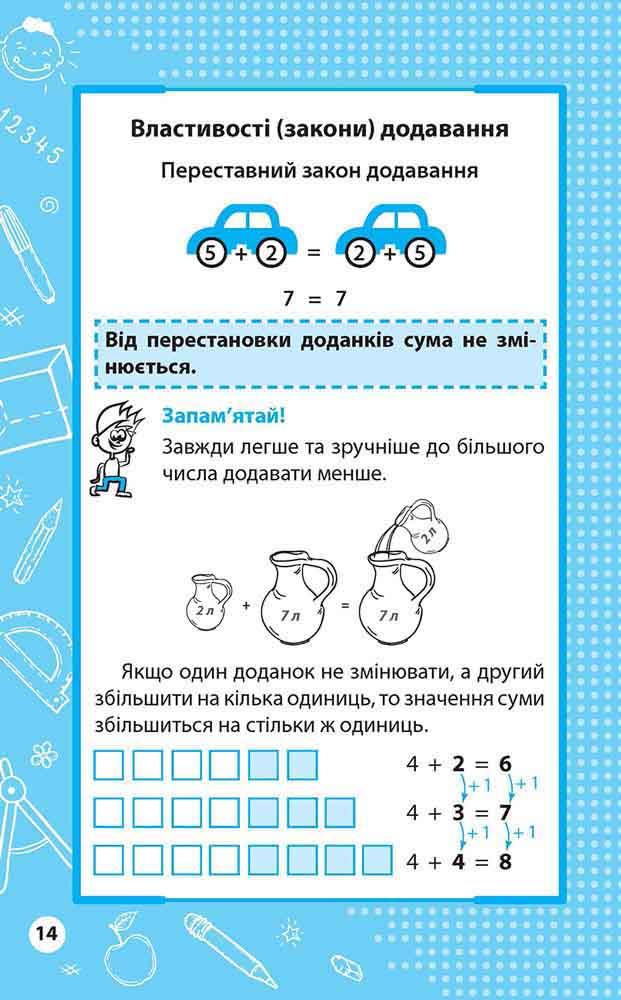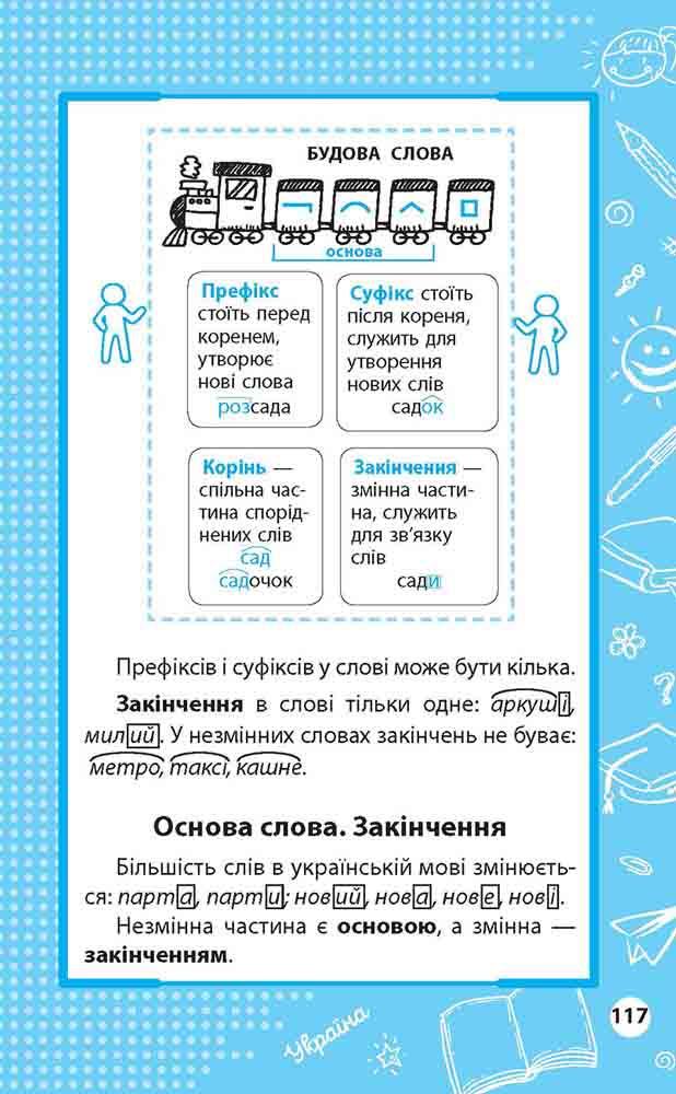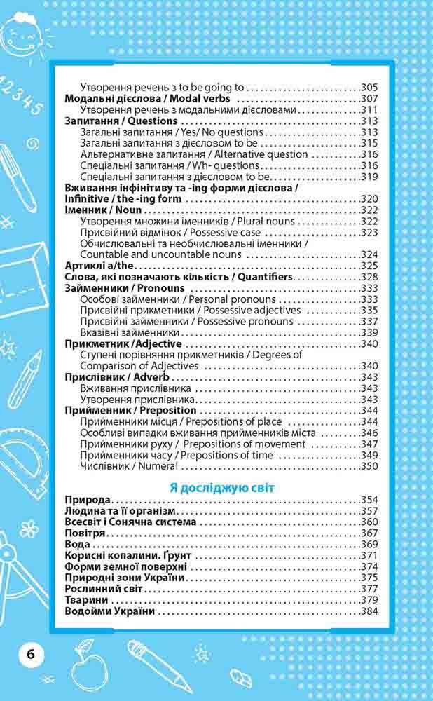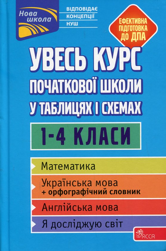 У книзі подано матеріал з основних предметів початкової школи — математики, української мови, англійської мови, природознавства. Правила і визначення поєднані в наочні логічні блоки, схеми і таблиці, які дозволяють краще засвоїти й зрозуміти інформацію. Книга допоможе учням систематизувати набуті знання і надасть чудову допомогу в підготовці до ДПА за курс початкової школи. Посібник буде корисний учням початкової школи, батькам, педагогам.