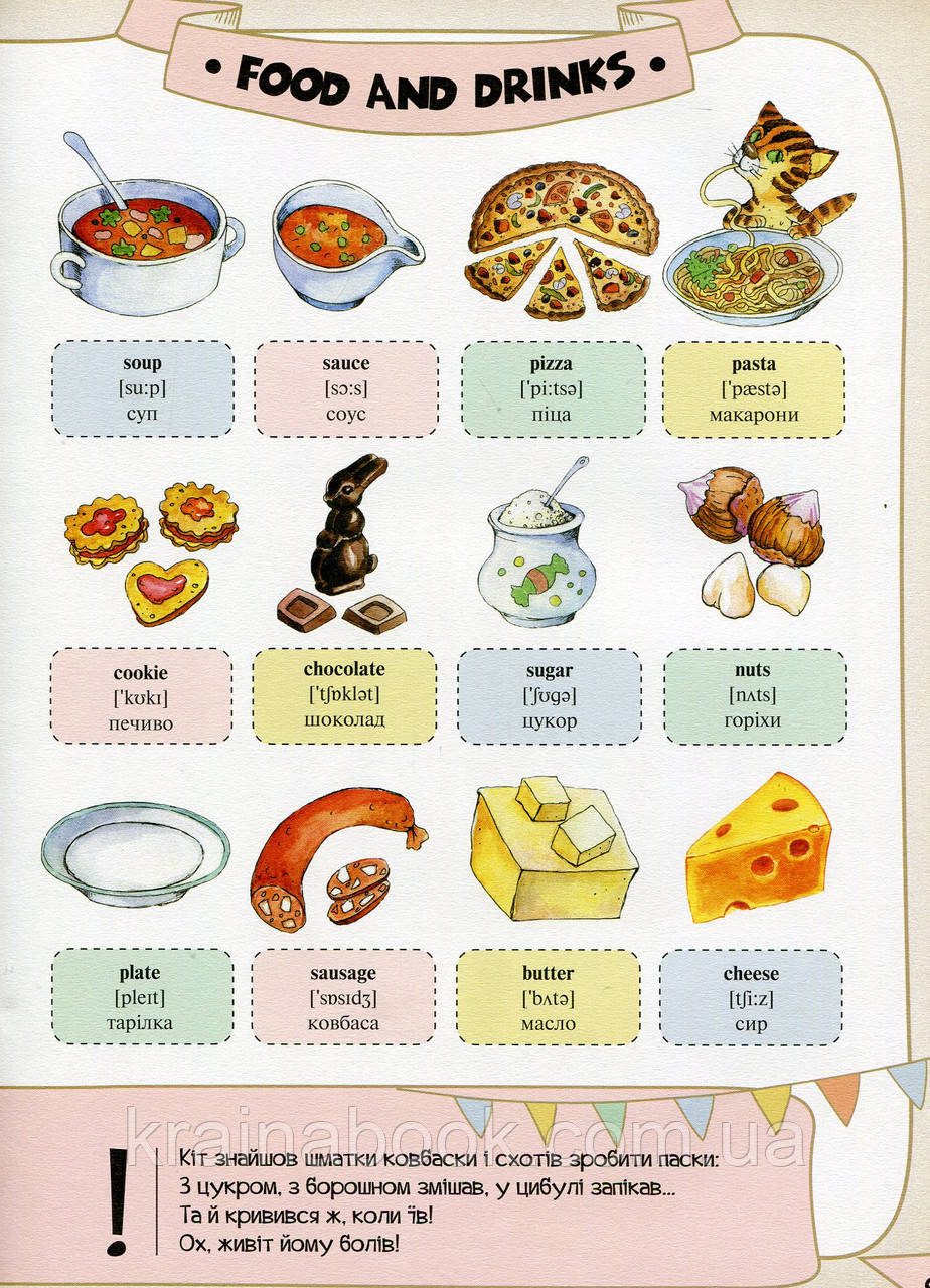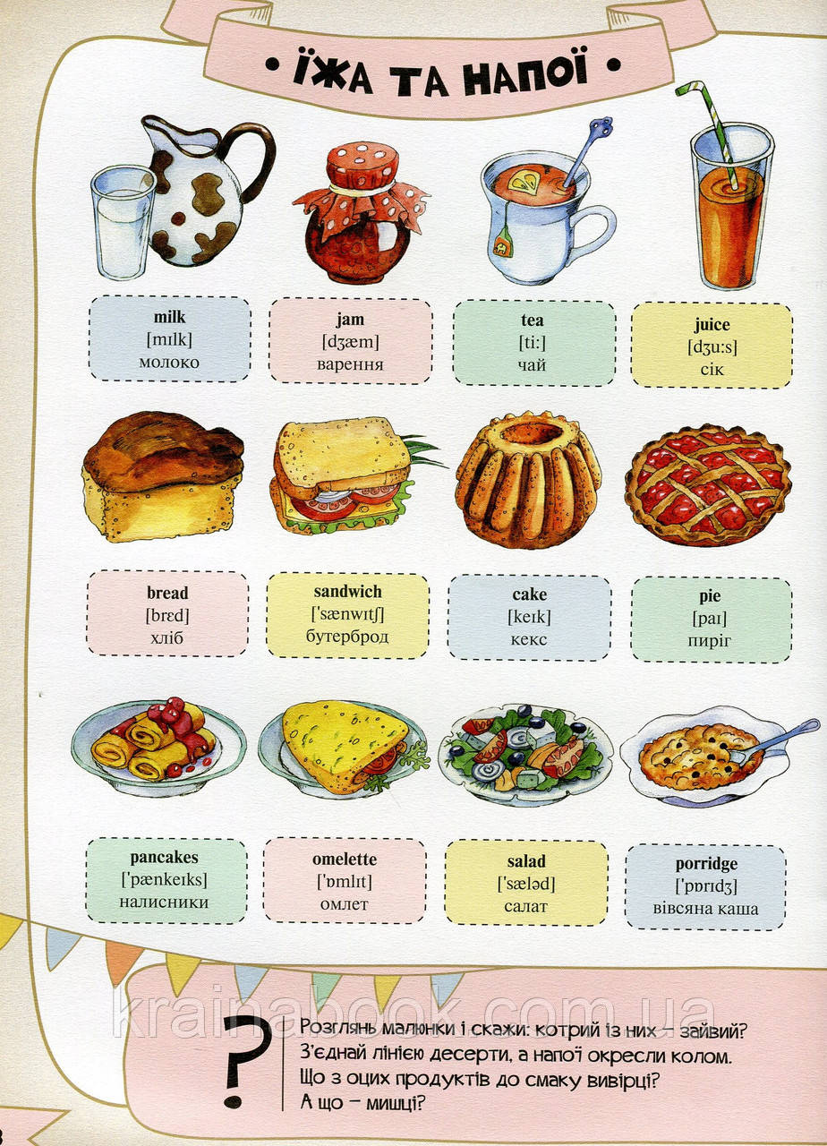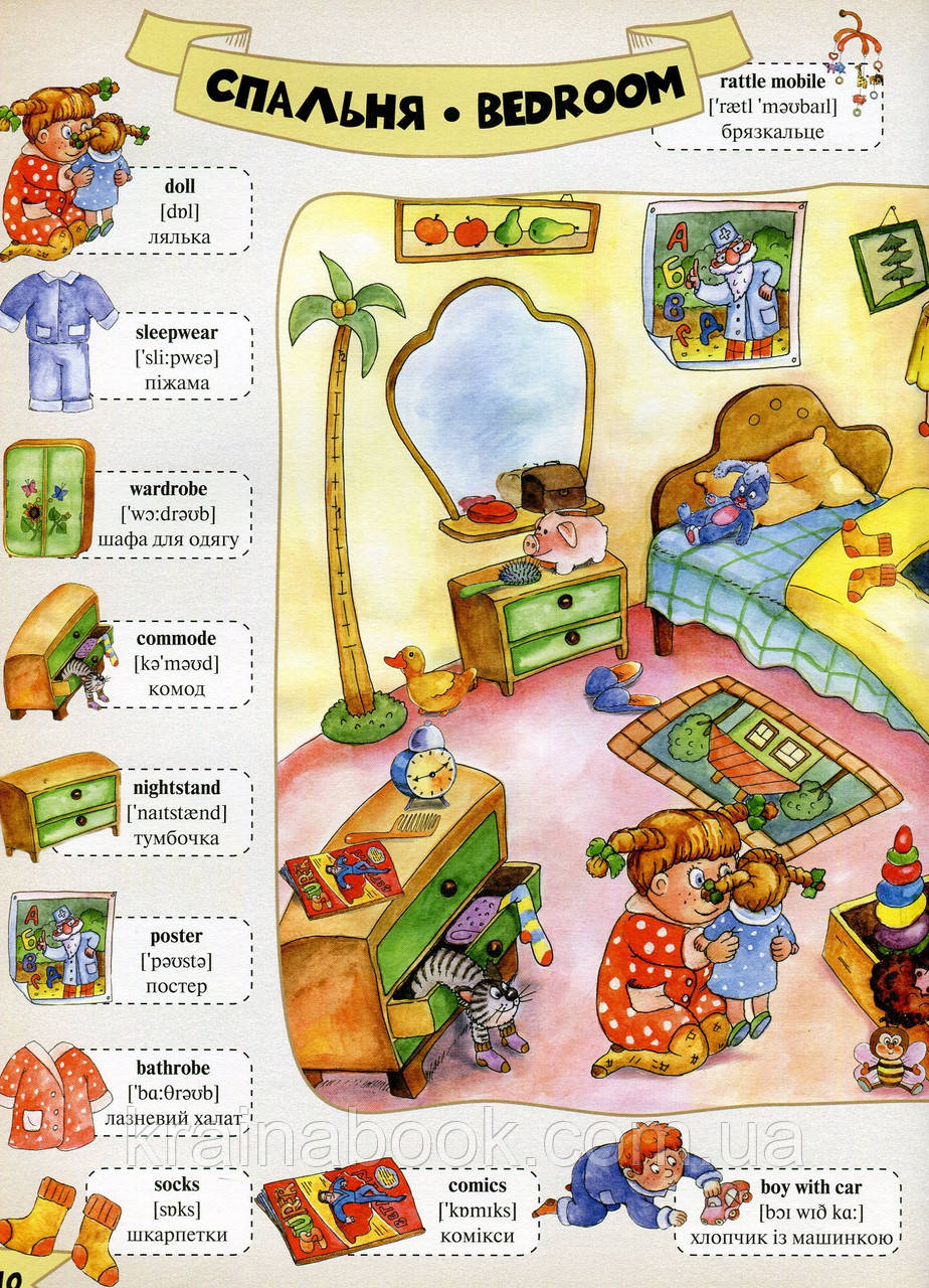 Ця чудова книжка містить 1000 англійських слів, які допоможуть малятам розширити словниковий запас і навчитися називати предмети, що їх оточують, англійською. Прекрасні ілюстрації зроблять навчання веселим і ненудним, транскрипції допоможуть з правильною вимовою, тематичні питання розвинуть логічне мислення, а кумедні вірші — пам’ять, фантазію і уяву.