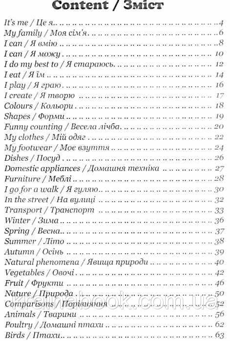 Дорослим, які не володіють англійською, стануть у пригоді поради щодо правильної вимови звуків. Їх розміщено у передмові до книги. Отож гайда вчитись разом із малюком!