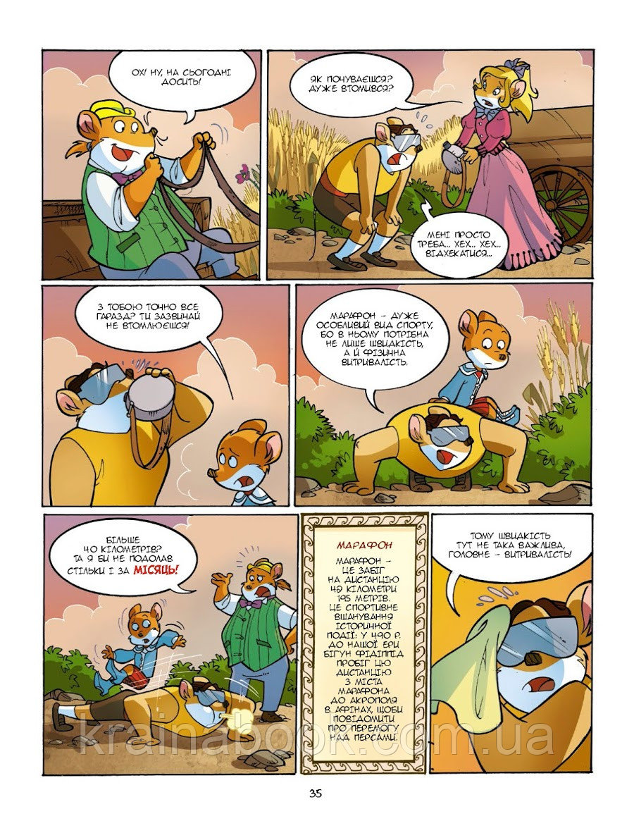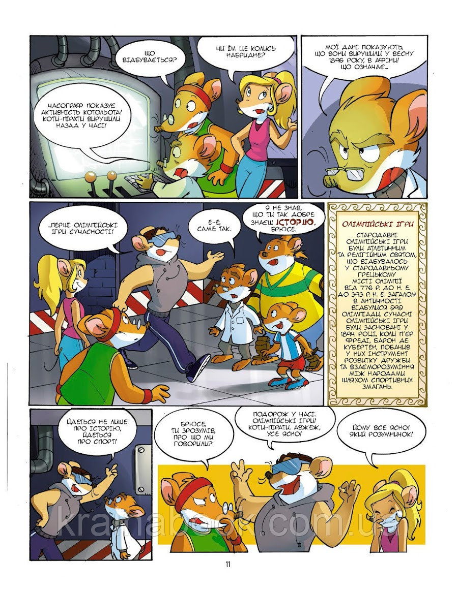 Джеронімо Стілтону доводиться взяти участь у визначному змаганні з Котордоном III Котолонським, правителем котів-піратів! Чи вдасться Джеронімо та його друзям Патті, Бенджаміну, Трапу і Брюсу не дати котам-піратам змінити результати перших у новітній історії Олімпійських Ігор, що відбулись у 1896 році? Чи все ж його закляті вороги нарешті зуміють здобути таку жадану перемогу?