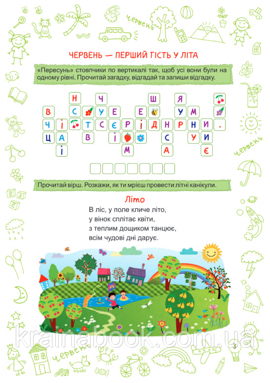 У зошиті запропоновано навчальні та розвивальні завдання, які допоможуть вдало поєднати відпочинок з інтелектуальним розвитком, весело, пізнавально і корисно провести літні канікули.