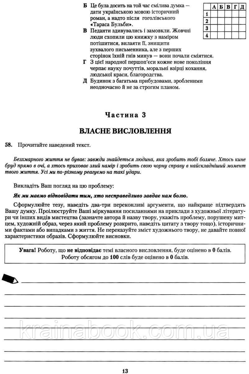 Щоб успішно виконати тест з української мови й літератури, готуватися до нього потрібно систематично й відповідально. З української мови треба повторювати правила, виконувати тренувальні вправи й завдання в тестовій формі, а також писати власні висловлення — творчі роботи. З української літератури потрібно читати й аналізувати твори художньої літератури, повторювати відомості з теорії літератури. Ці види робіт ви можете виконувати, використовуючи І частину цього комплекту (її укладено за тематичним принципом). А II частина містить сім варіантів тестів такого ж формату, як на зовнішньому незалежному оцінюванні.