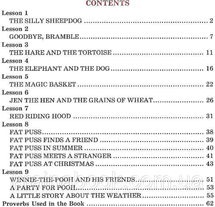 Книга для домашнього читання англійською мовою містить 15 текстів (казки, оповідання), а також вірші, загадки, прислів’я для формування навичок читання на середньому рівні. Вправи систематизовано за рубриками, що сприяє кращому розумінню тексту, засвоєнню складних граматичних явищ англійської мови, розвитку творчих здібностей учнів.