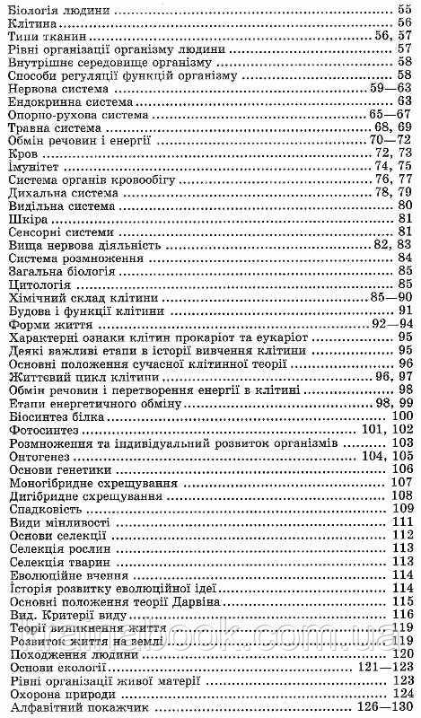 Посібник має чотири розділи: ботаніка, зоологія, біологія людини, загальна біологія.