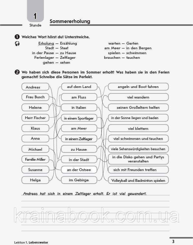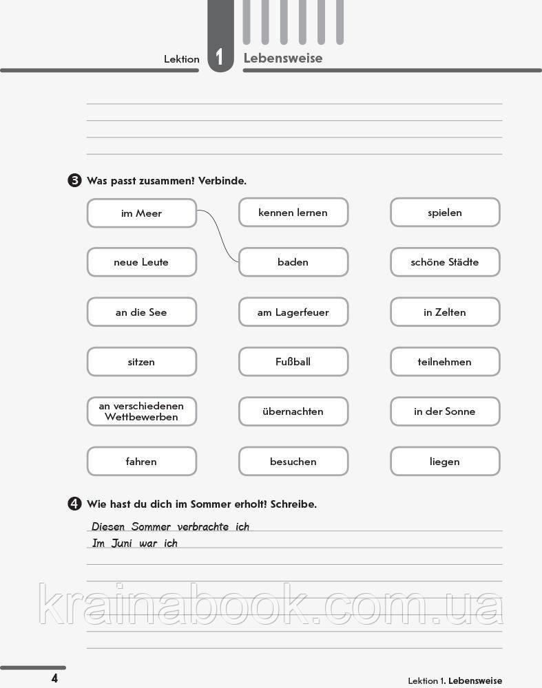 Зошит містить різноманітні завдання, призначені для більш детального опрацювання учнями матеріалу підручника на уроках і вдома. Багато завдань спрямовано на розвиток таких комунікативних умінь, як сприймання на слух, писемне продукування й писемна взаємодія. Різноманітність і насиченість посібника уможливлює варіювання видів роботи на уроці й реалізацію індивідуального підходу. Мовне портфоліо дозволить учням самостійно здійснити контроль своїх навчальних досягнень і виявити прогалини у знаннях. До зошита також включено інтерактивні завдання, розміщені на сайті видавництва*. Для учнів 10 класів закладів загальної середньої освіти, що вивчають німецьку мову як другу іноземну, і вчителів німецької мови.Книги цього видавництва