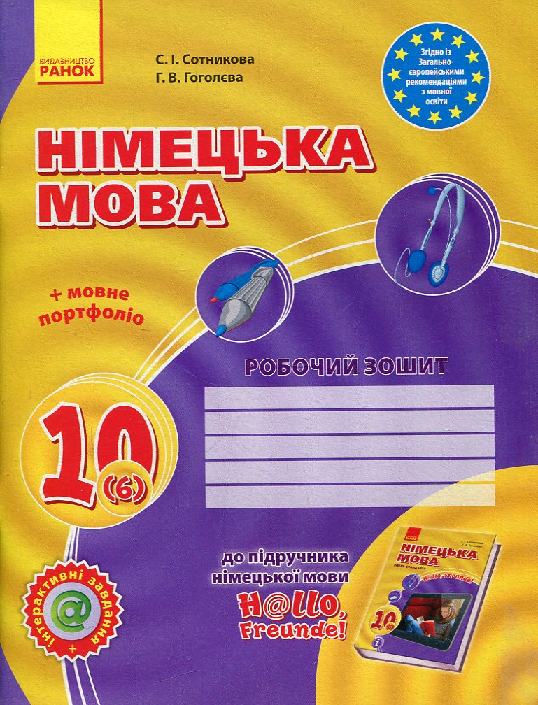 Німецька мова: Робочий зошит 10 кл.(6 рік), Hallo, Freunde! Сотникова С., Гоголєва Г.