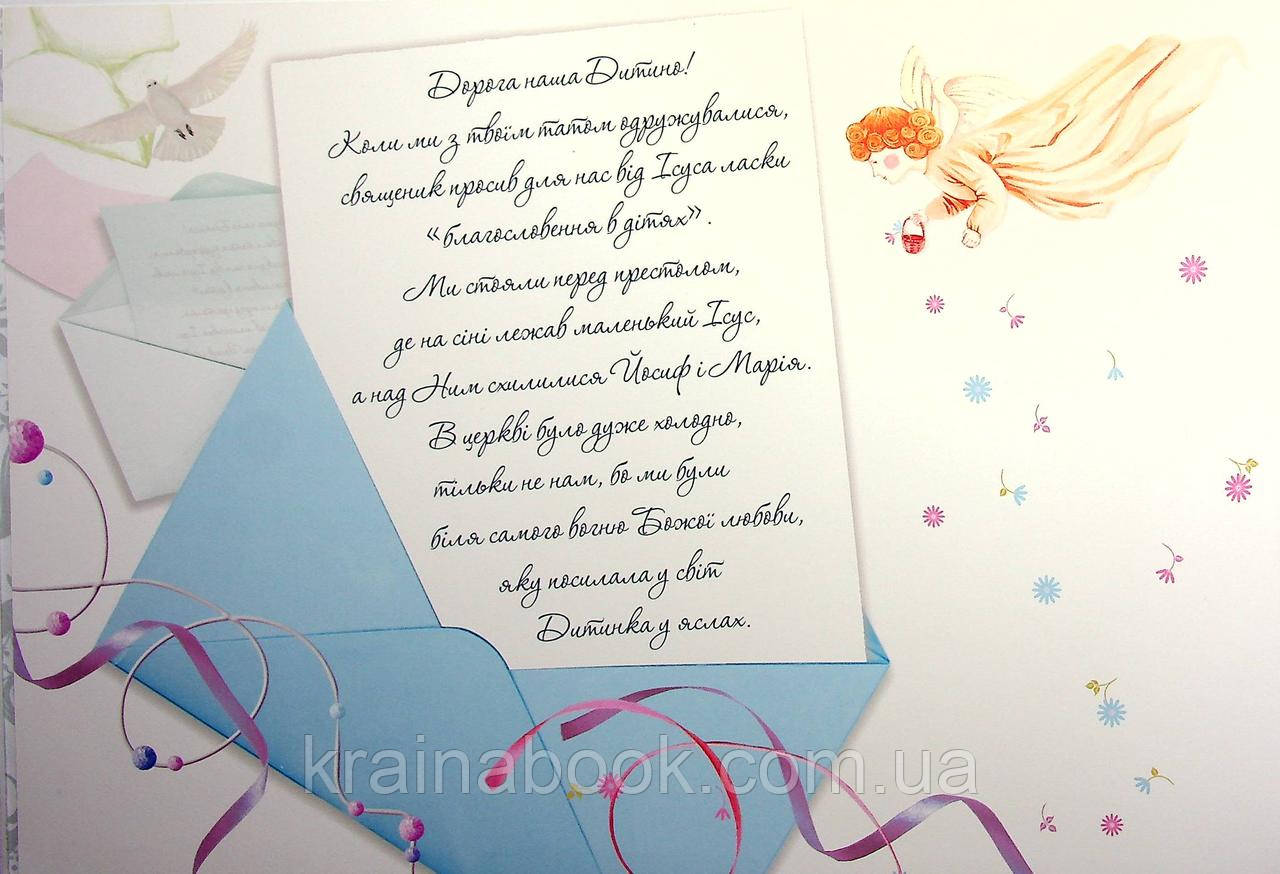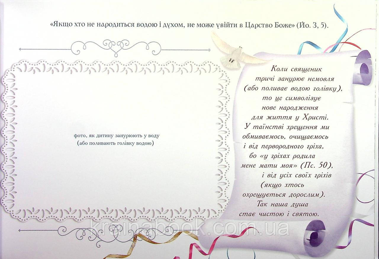 Альбом-пам`ятка для ваших діток в день хрещення. Допоможе батькам зафіксувати перше Таїнство дитинки, всі важливі дані, перші світлини малюка і зігріватиме вечорами, коли дитинка уже підросте