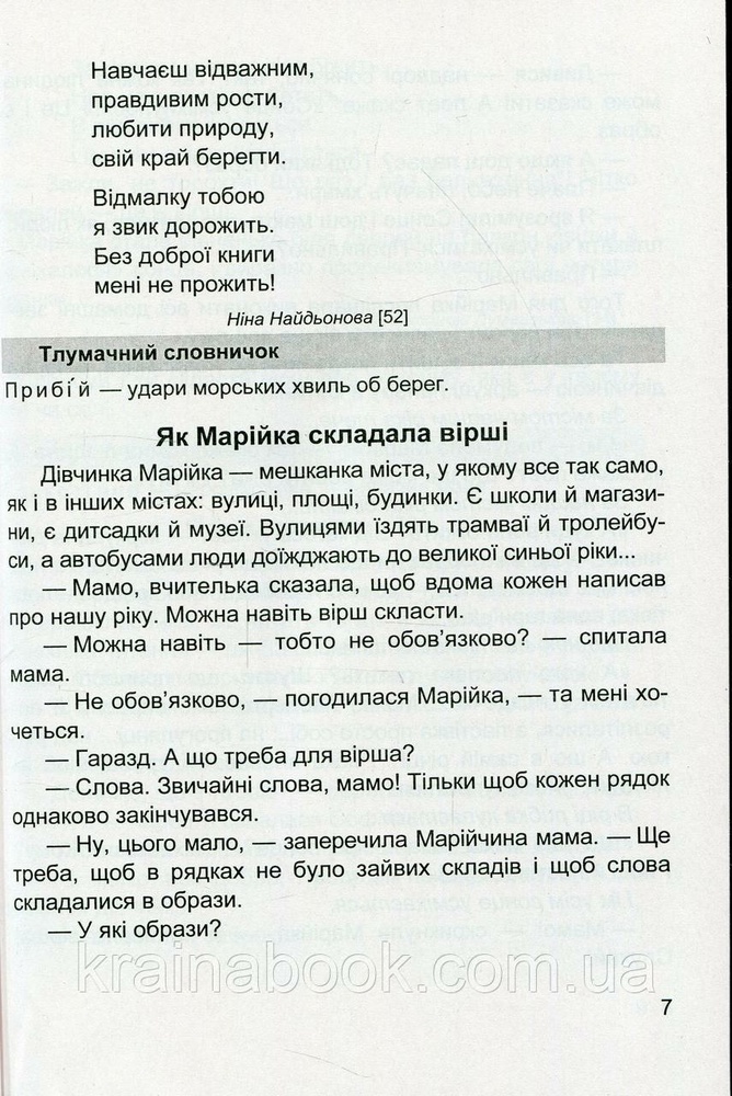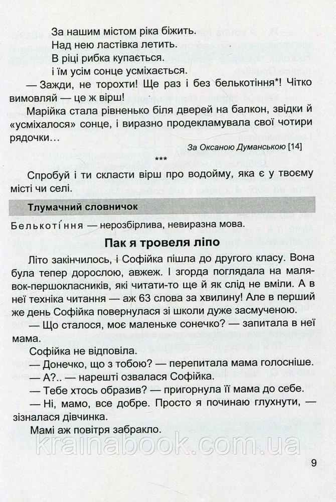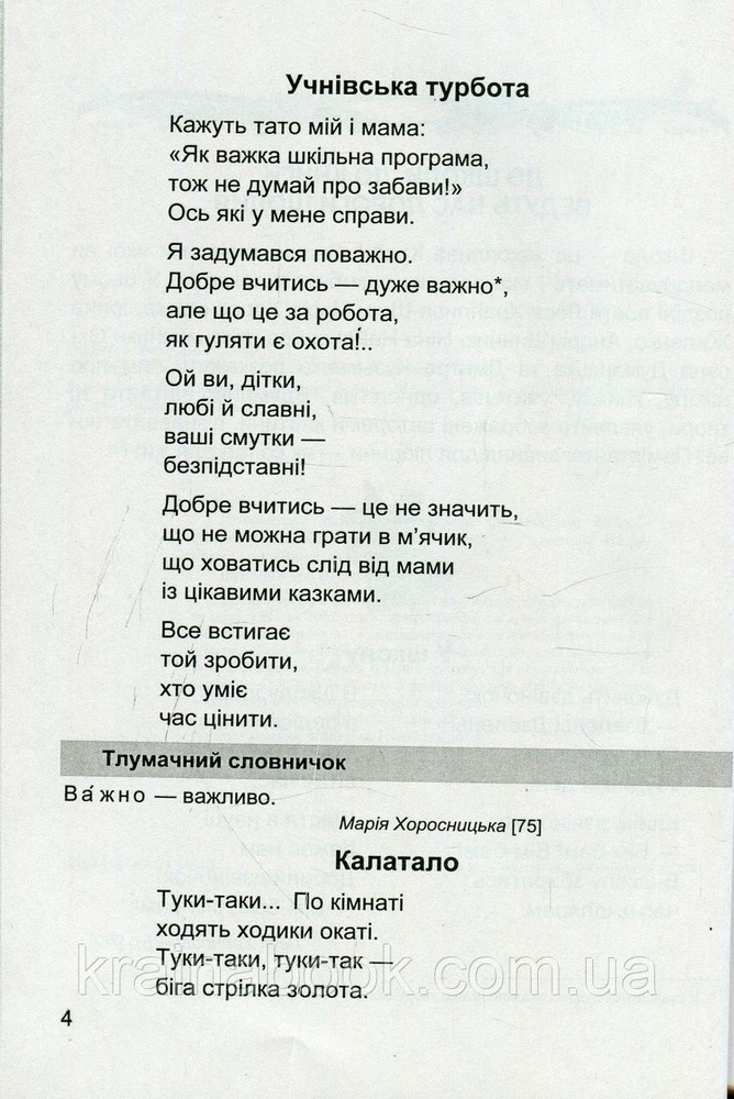 Книжка містить науково-пізнавальні, художні твори українських та зарубіжних авторів, казки, приказки, прислів’я, загадки на теми для додаткового читання, які відповідають вимогам Державного стандарту початкової освіти, Типовій освітній програмі з читання за редакцією О. Я. Савченко та Типовій освітній програмі для початкової школи за редакцією Р. Б. Шияна. Творчі й логічні завдання в кінці кожної теми допоможуть дітям краще зрозуміти прочитане.