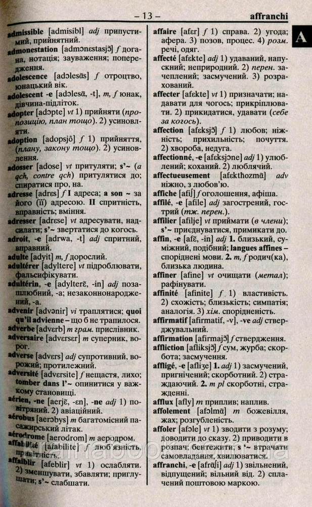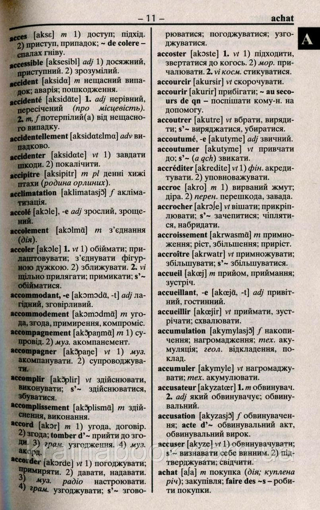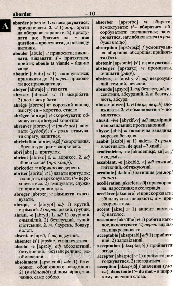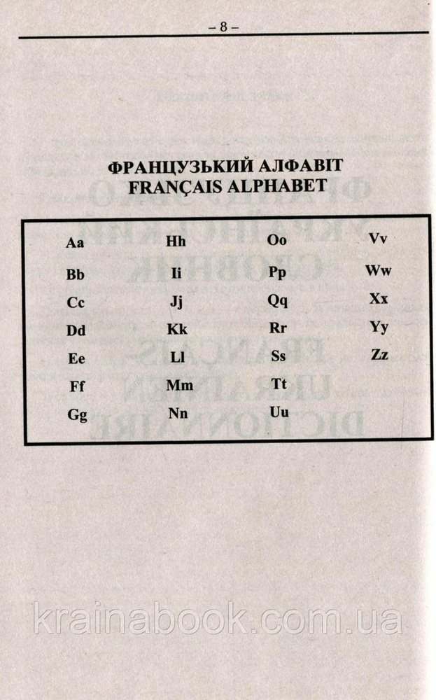 Словник містить близько 100 тисяч слів, словосполучень і словоформ, які широко охоплюють лексику сучасної французької літературної мови, поширену фразеологію і найуживанішу науково-технічну термінологію. Призначений для осіб, які вивчають французьку мову. Книга буде незамінним помічником школярам, студентам, викладачам, а також усім, хто поглиблено вивчає французьку мову.