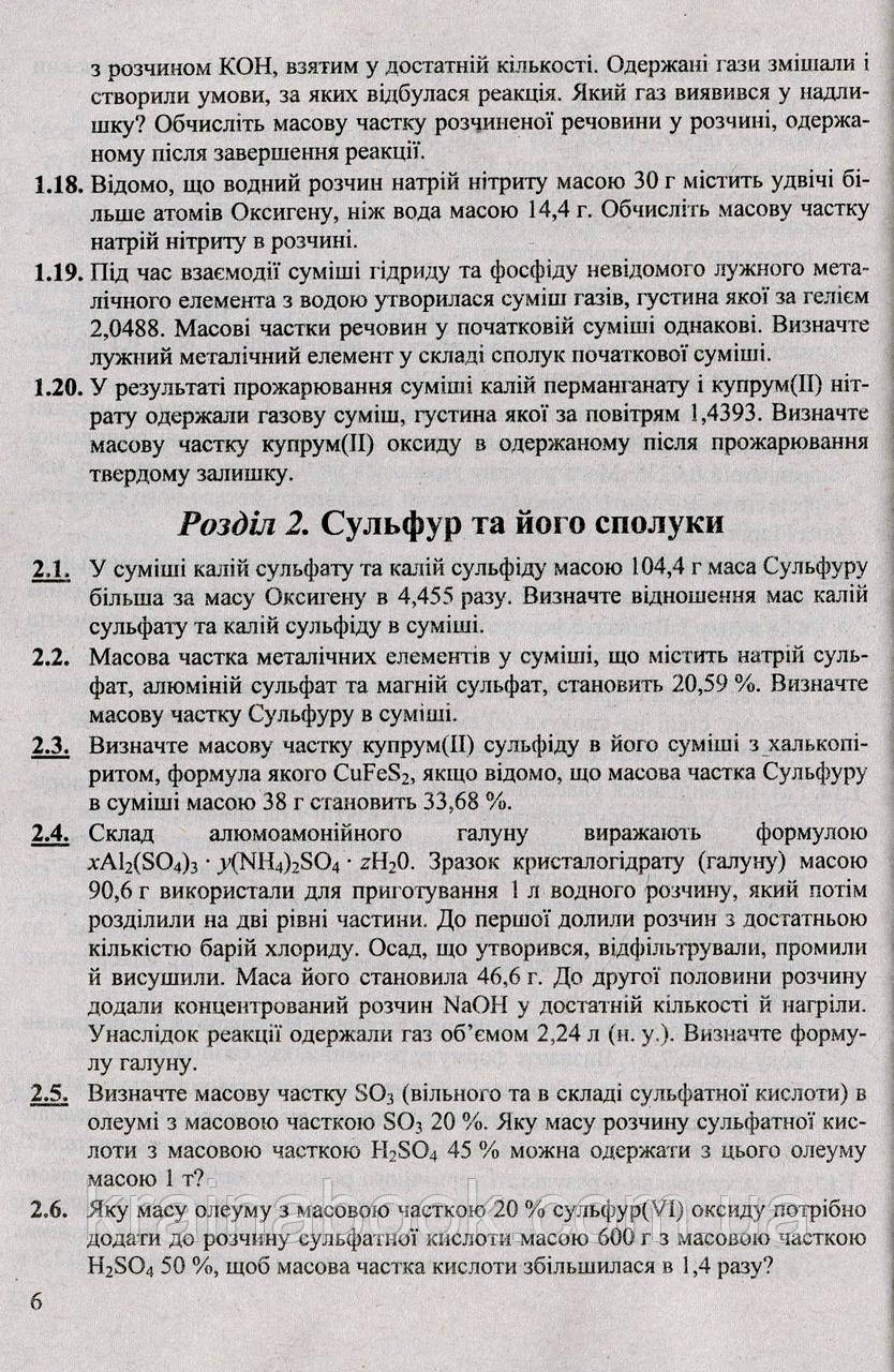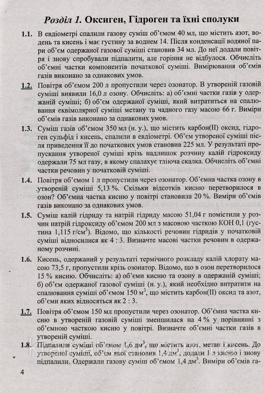 Посібник містить задачі до всіх розділів хімії, що вивчаються в закладах загальної середньої освіти, які можуть бути використані для індивідуальної та групової роботи з учнями, які вивчають хімію і готуються до вступу у вищі учбові заклади. Для учителів хімії, учнів старших класів закладів загальної середньої освіти, ліцеїв, та абітурієнтів.