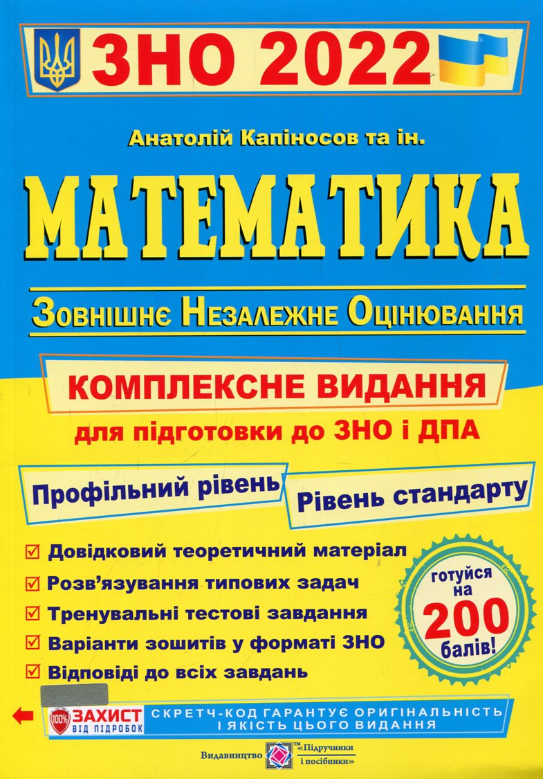 Математика. Комплексне видання для підготовки до ЗНО та ДПА 2022. Капіносов А.