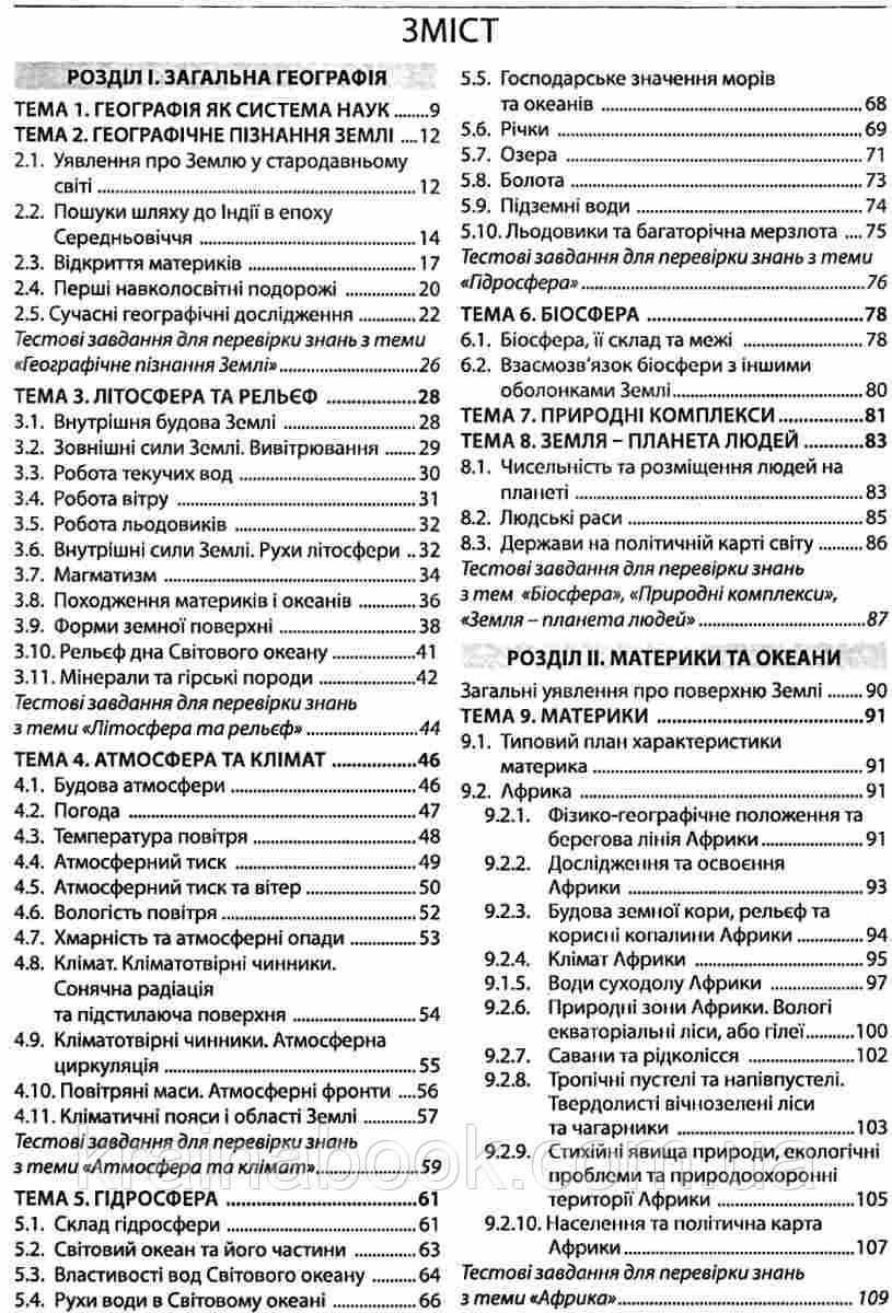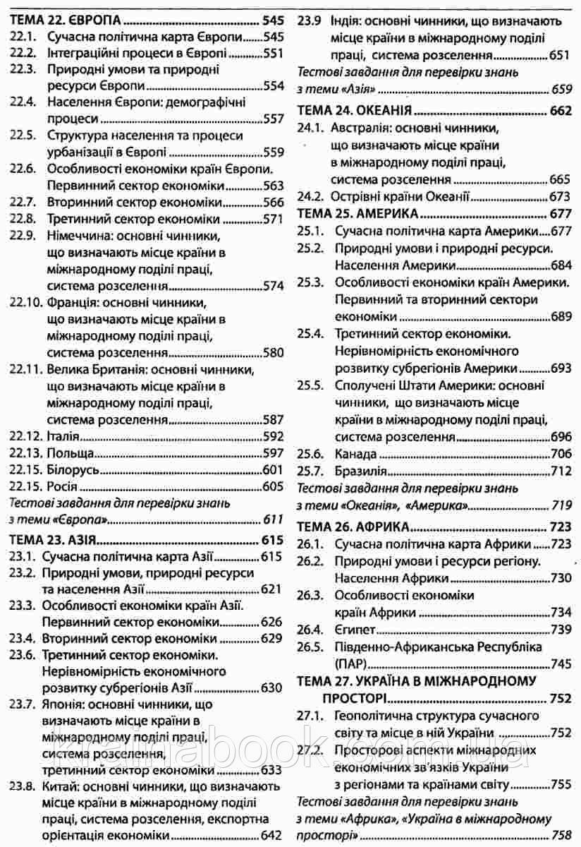Для самоконтролю пропонуються тестові завдання, подібні за структурою та змістом до завдань для складання зовнішнього незалежного оцінювання з географії.