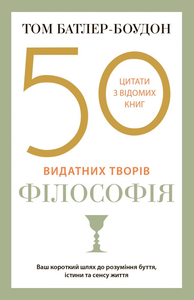 Понад 2000 років філософія була найкращим провідником у досвід людського буття та справжньої природи реальності. Від Аристотеля, Платона, Епікура, Конфуція, Цицерона та Геракліта в античні часи до раціоналістів XVII століття - Декарта, Лейбніца та Спінози, від великих діячів ХХ століття - Жана-Поля Сартра, Жана Бодріяра та Симони де Бовуар до сучасних мислителів - Майкла Сендела, Пітера Сінгера та Славоя Жижека, книга ''50 видатних творів. Філософія'' знайомить з основними працями, які сформували філософію як дисципліну та справили відчутний вплив на реальний світ.
