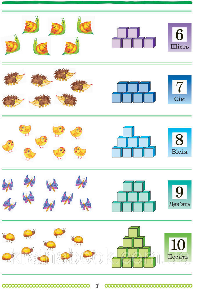 Частина третя – «Математика» – присвячена формуванню у дитини елементарних математичних уявлень. Діти вивчатимуть цифри, робитимуть найпростіші обчислення, рахуватимуть, складатимуть таблиці, розпізнаватимуть фігури, проводитимуть вимірювання. Видання виправлене та доповнене.