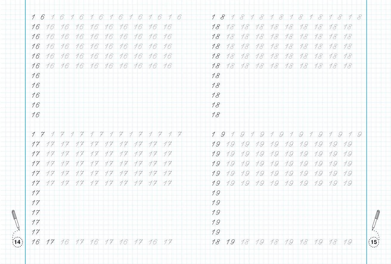 Писати цифри — просто! Ви тримаєте в руках прописи-тренажер, за допомогою яких ваш малюк зможе підготуватися до написання цифр від 0 до 9 та їхніх елементів. Пропоновані вправи оформлено відповідно до вимог сучасних освітніх програм і призначено для дітей дошкільного віку та учнів першого класу. У робочому зошиті розміщено комплекс завдань, мета яких — сформувати навички написання чисел від 0 до 20. Вправи дібрано за принципом «від простого до складного». Прописи з математики сприяють розвитку дрібної моторики та розумових здібностей, тренують руку, привчають дитину дотримуватися рядка.