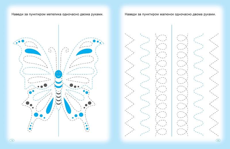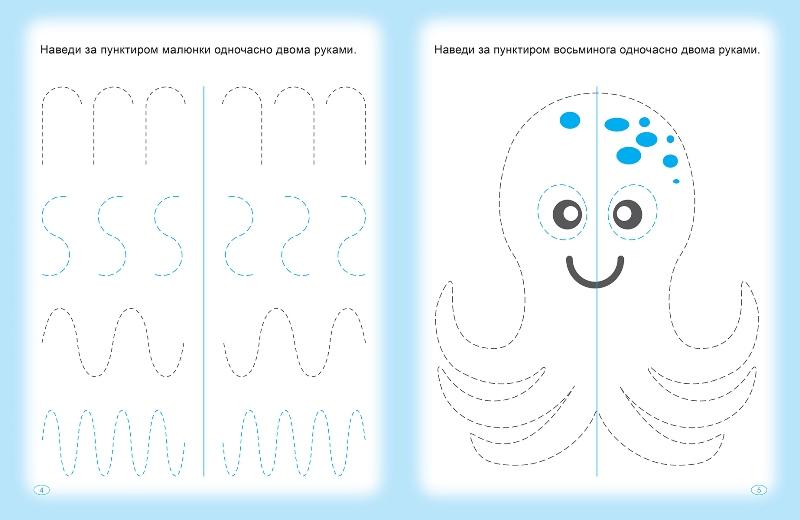 Прописи допоможуть дитині навчитися впевнено тримати олівець та одночасно розвивати обидві півкулі мозку завдяки письму двома руками. У книжці запропоновано ілюстрації, які треба навести одночасно лівою та правою руками. Такий вид малювання сприймається як розвага, а не як заняття. Завдяки таким тренуванням дитина підвищить рівень розподілу уваги і буде більш успішно навчатися. Прописи упорядковані згідно з методичними рекомендаціями щодо підготовки руки до письма.