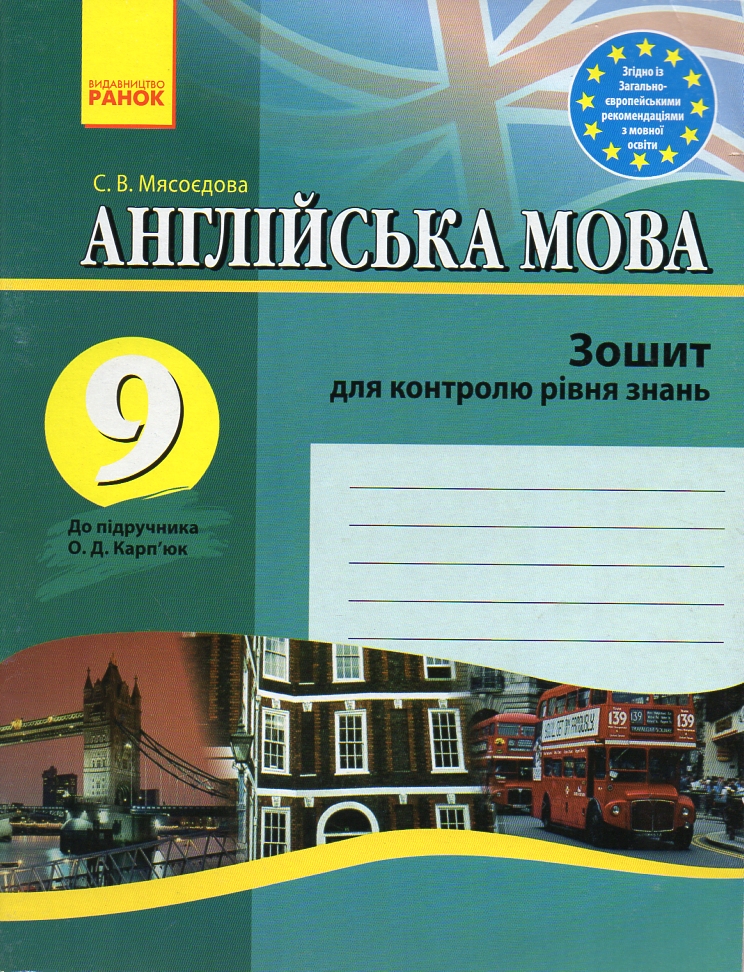 Зошит, складений до підручника О. Д. Карп’юк, містить тематичні та семестрові контрольні, а також поточні перевірочні роботи з англійської мови для учнів 9 класів. В кінці книги подано тексти та діалоги для аудіювання. Для учнів загальноосвітніх шкіл і вчителів англійської мови.
