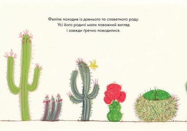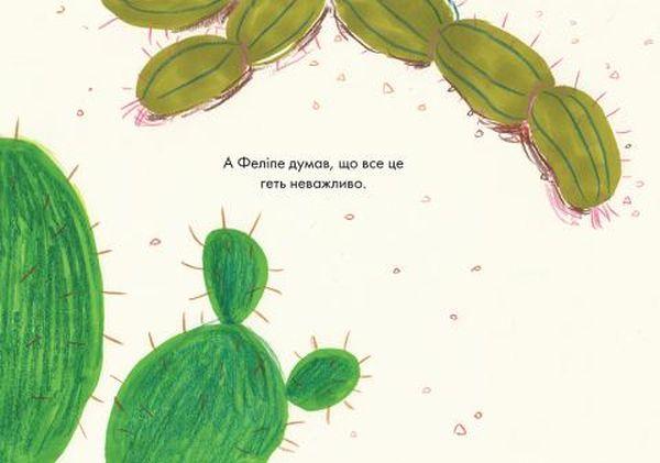 Кожному з нас часом потрібні обійми, чиїсь теплі й міцні обійми!Потрібні вони і юному кактусу Феліпе, але його родичі не схильні до пестощів і обіймашок. Кактуси — вони такі, часом бувають дуже колючі… От і Феліпе теж мав гострі голочки. Проте один випадковий штрик його не зупинив, і він все ж таки вирушив на пошуки друга і — можливо — назустріч таким омріяним обіймам.