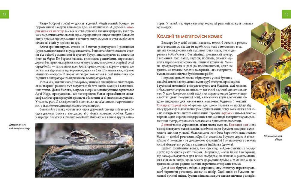 Зводячи архітектурні споруди, людина змінила вигляд планети. Тварини не меншою мірою впливають на природний ландшафт, щоправда, ми не завжди помічаємо результат їхньої діяльності.Чимало тварин будують собі житла, але більшість цих споруд майже непомітні серед заростей, каміння або під землею. Через те не можна по-справжньому оцінити діяльність «великих зодчих», чиї творіння часом набагато досконаліші від людських. Про те, які тварини найкращі будівельники і винахідники, і яке в них житло, дізнайтеся з книги, яку тримаєте в руках.