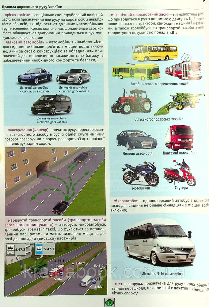 - Кольорові ілюстрації, дорожні знаки та розмітку у тексті Правил