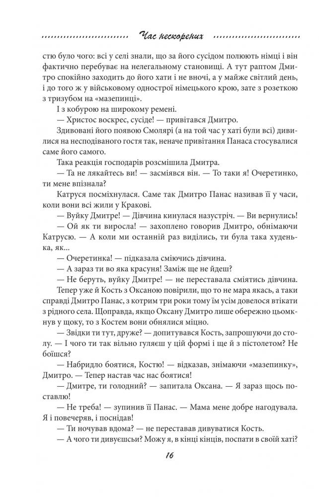 «Час нескорених» — сьома книга «Галицької саги» — охоплює останні роки Другої світової війни і після неї. Збагнувши, що сподіватися більше ні на кого, галичани самі вирішували свою долю, але шляхи для цього обирали різні. Хтось повірив німецькій пропаганді й записався до дивізії «Галичина», а дехто зрозумів, що єдино правильний шлях — це вступити до лав Української Повстанської Армії. Але перших чекав «бродівський котел», а другим довелося стати до бою з іншим ворогом. На Галичину повернулася радянська влада, яка виявилася не кращою за німецьку: в селах насильно створювали колгоспи, під дулами автоматів відбулися вибори до Верховної Ради СРСР, на наспіх скликаному соборі ліквідували Українську греко-��атолицьку церкву. Але у численних криївках, схованих від ворожих очей, залишалися ті, хто не скорився долі.