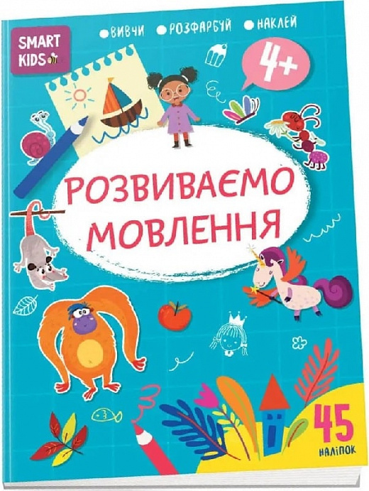 Яскрава, цікава книжка для дошкільнят з розвитку мовлення. Це і перший ілюстрований словничок, з яким дитина легко вивчить нові українські слова; і корисна книжка з наліпками та розмальовками для розвитку дрібної моторики і навичок письма. Вона неодмінно сподобається діткам, які люблять веселі пізнавальні завдання.