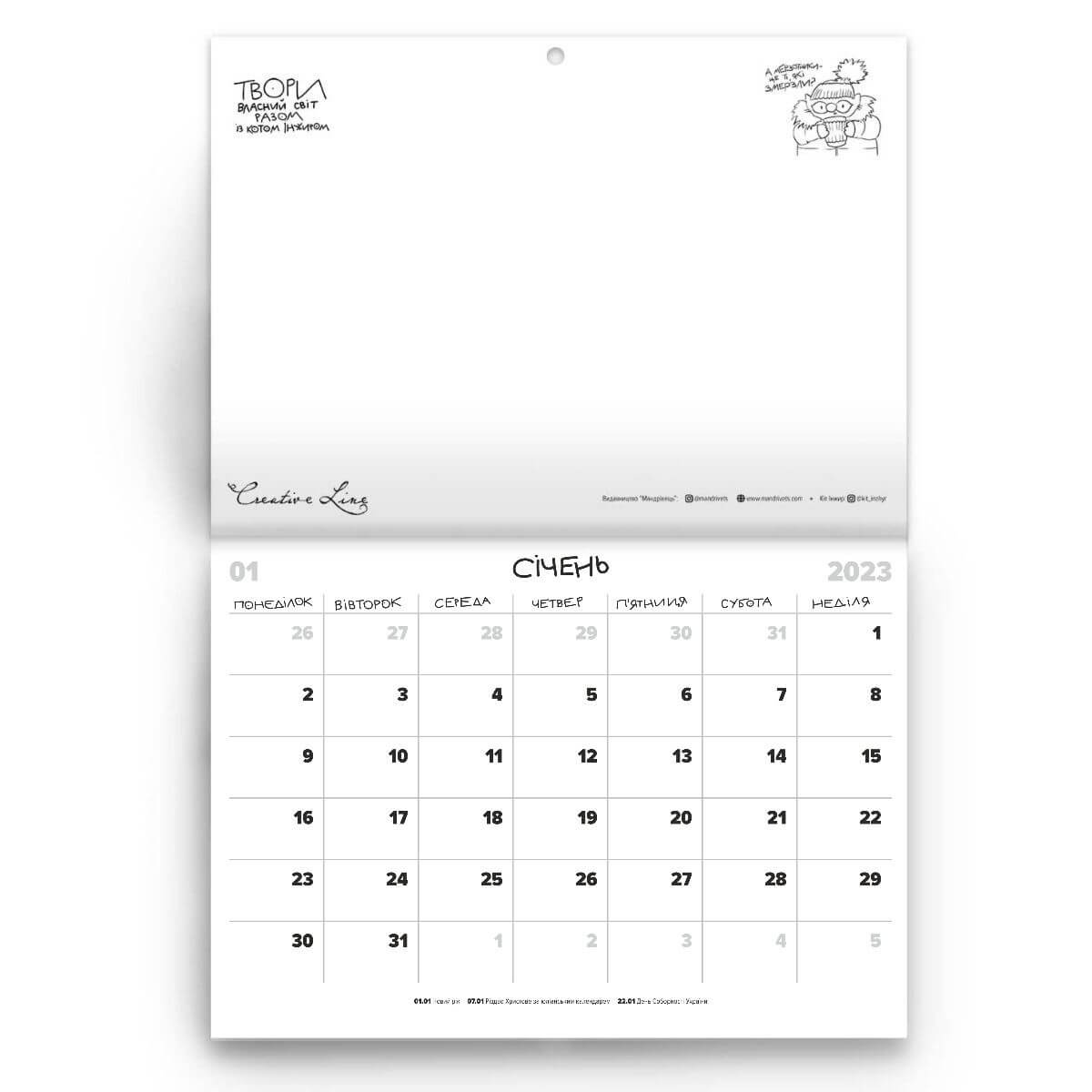 «КАЛЕНДАР кота Інжира» – це помічник як для молодої людини, студента, так і для дорослого серйозного пана чи панянки. Всім він внесе у життя легкість, позитив і трішки гумору.