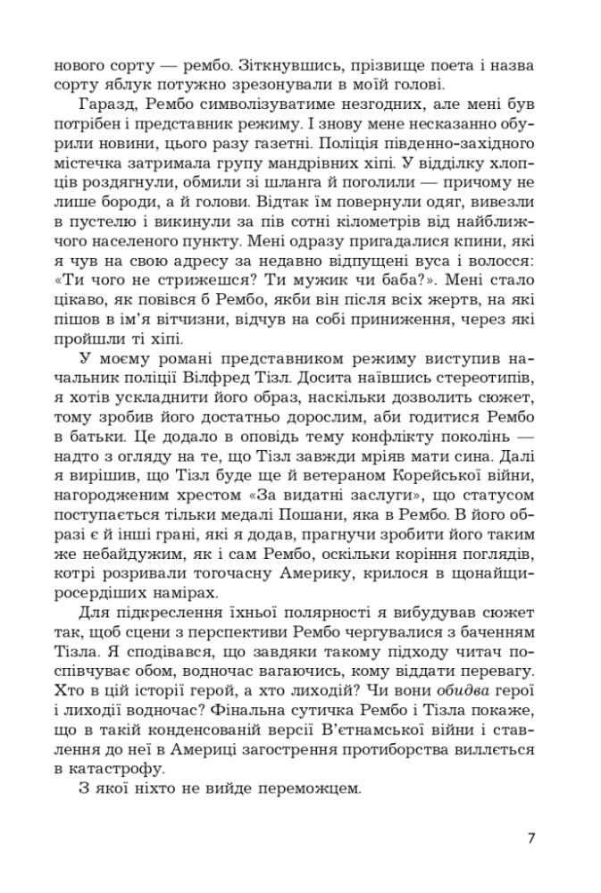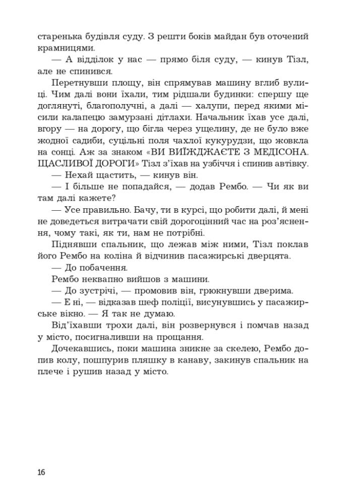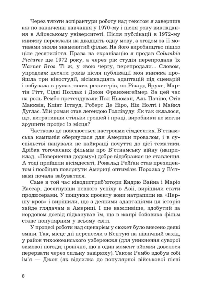 Ця книжка — літературна першооснова історії легендарного Рембо, що підкорив світ у кінематографічній версії. Тут ми бачимо персонажа таким, яким його створив письменник. Примари тяжкої В’єтнамської війни ятрять його душу, і коли шеф поліції містечка, до якого забрів Рембо, вирішує позбутися непроханого гостя, несподівано виявляється: цим він роздмухав вогонь, що охопить усе навколо... Драматична історія про двох відданих служінню людей, чиї зболені душі поринають у необов'язковий конфлікт і не можуть уникнути фатальної розв'язки.