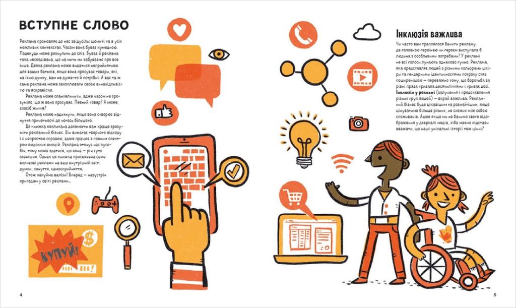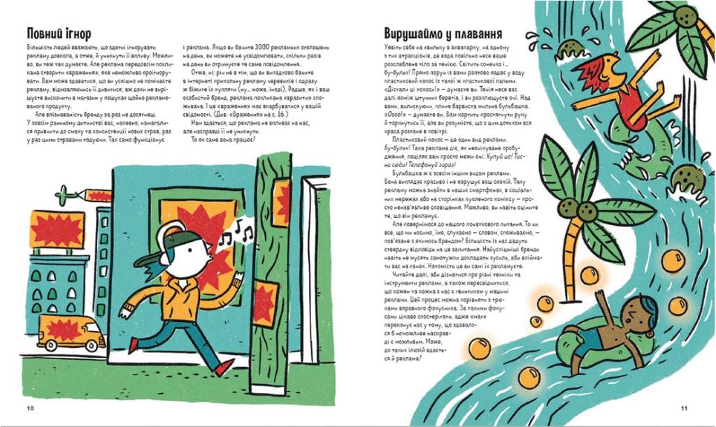 Що таке бренд, рекламний план та секрети просування товару? У сучасному світі барвистої й захопливої реклами, яка є повсюди, так просто потрапити на цей гачок: один погляд і все — реклама заполонила ваші емоції та міцно засіла у вашій голові. Авжеж, тут секрет у методах та інструментах реклами, вмінні розуміти та впливати на цільову аудиторію і багато іншого. Ця книжка розповість вам усе про правила рекламного бізнесу — доступно і цікаво. Розвивайте свою медіаграмотність і навчайтеся мислити критично, щоби приймати мудрі рішення.