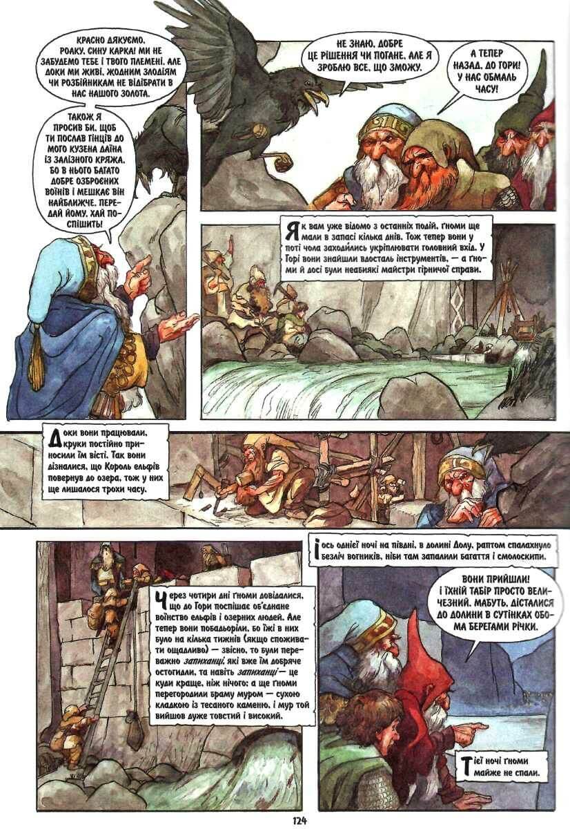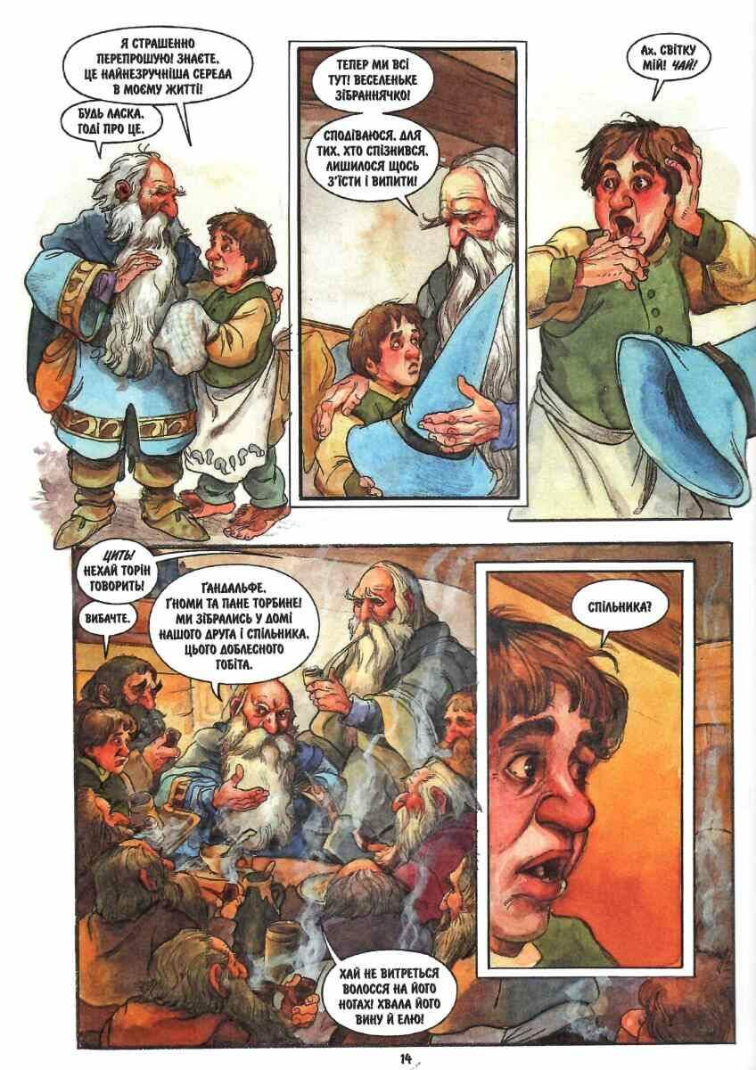 Перша і єдина мальована версія славнозвісного Толкінового «Гобіта» вийшла друком 1990 року і відтоді стала одним із найпопулярніших графічних романів в англомовному світі. Це історія Більбо Торбина, статечного гобіта, любителя затишку, який мимоволі долучився до небезпечної виправи ґномів, коли ті задумали повернути собі власні скарби, загарбані драконом.