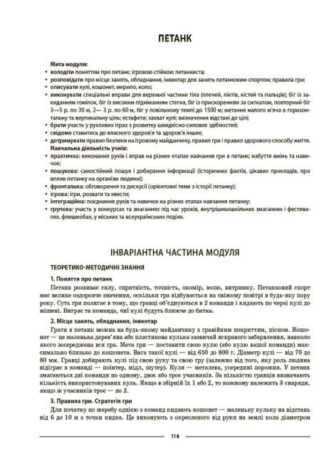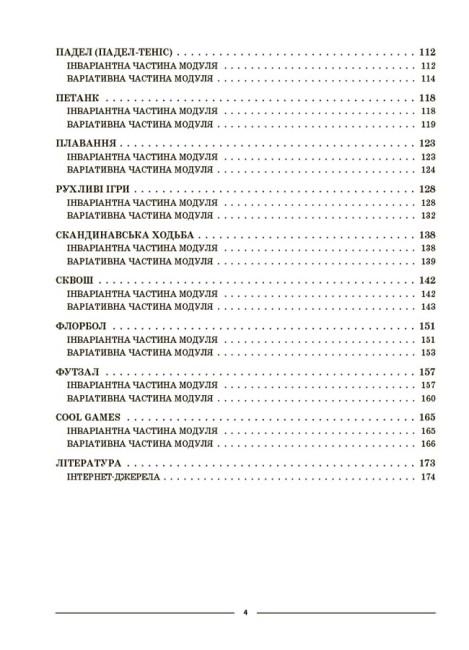 Посібник містить 17 розкритих за змістом варіативних модулів, змістовну інваріантну частину та календарно-тематичне планування як додаток до посібника. Наведені варіативні модулі були обрані нами, бо ми вважаємо їх доцільними для викладання з таких причин: гендерний розподіл, привабливість для учнів, оптимальна організація навчального часу з урахуванням дотримання правил безпеки на уроках та наявність необхідного інвентарю, яким можна скористатися для опанування декількох модулів, або який не потребує великих затрат на його закупівлю.