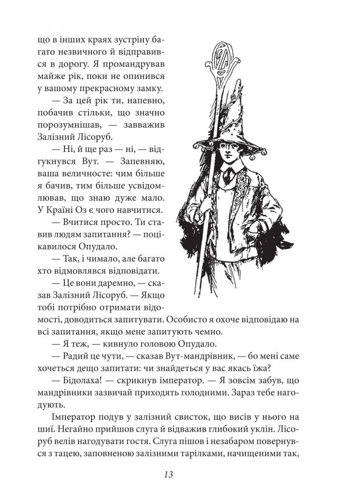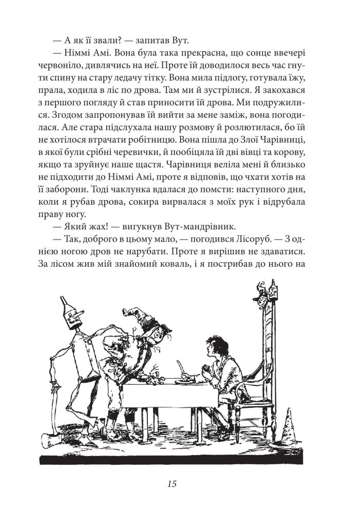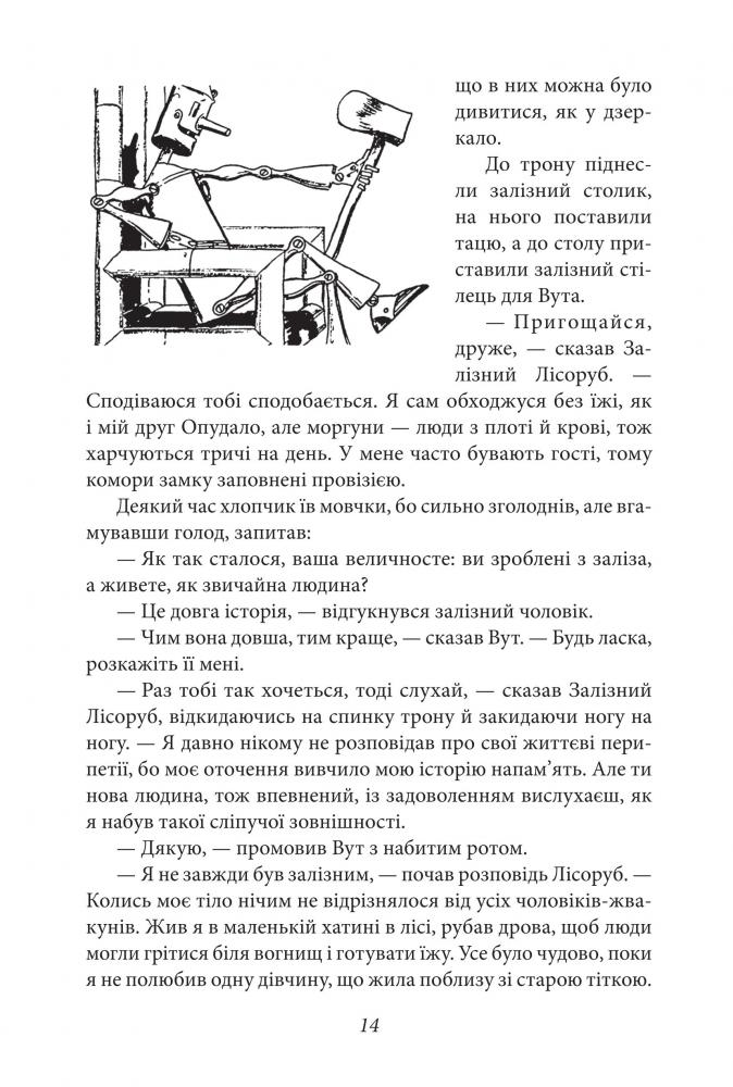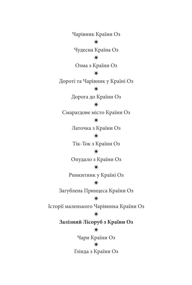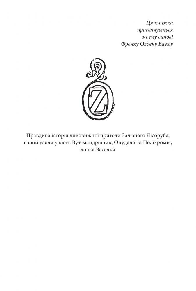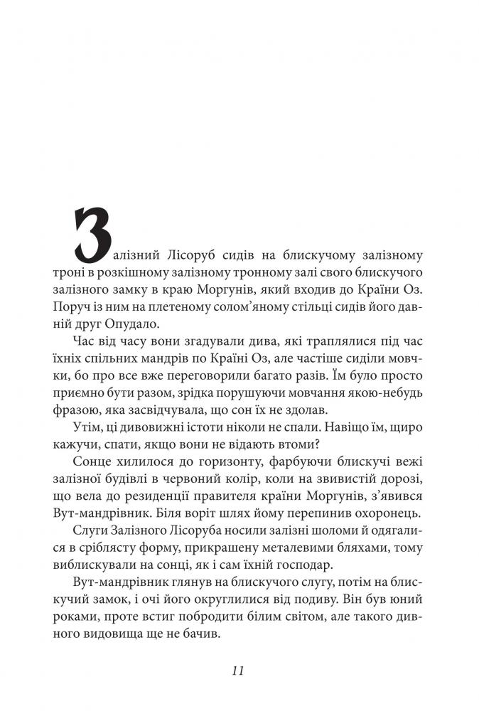 Всесвітньо відомий американський письменник Ліман Френк Баум (1856-1919) у своїх розповідях про Країну Оз часто згадує імператора моргунів, на ім’я Залізний Лісоруб. Тож читачі неабияк зацікавилися цим героєм, і оповідач вирішив присвятити йому окрему книжку. Адже історія життя колись звичайного юнака Ніка Лісоруба – це низка карколомних подій і пригод, які він зустрічає з незмінною мужністю. Наміри Злої Чарівниці зжити хлопця зі світу розбиваються об його нове залізне тіло, а серце, зшите з червоного шовку й набите тирсою, не втрачає благородства. Тому разом з вірними друзями Залізний Лісоруб вирушає на пошуки зниклої нареченої, якій дав слово одружитися.