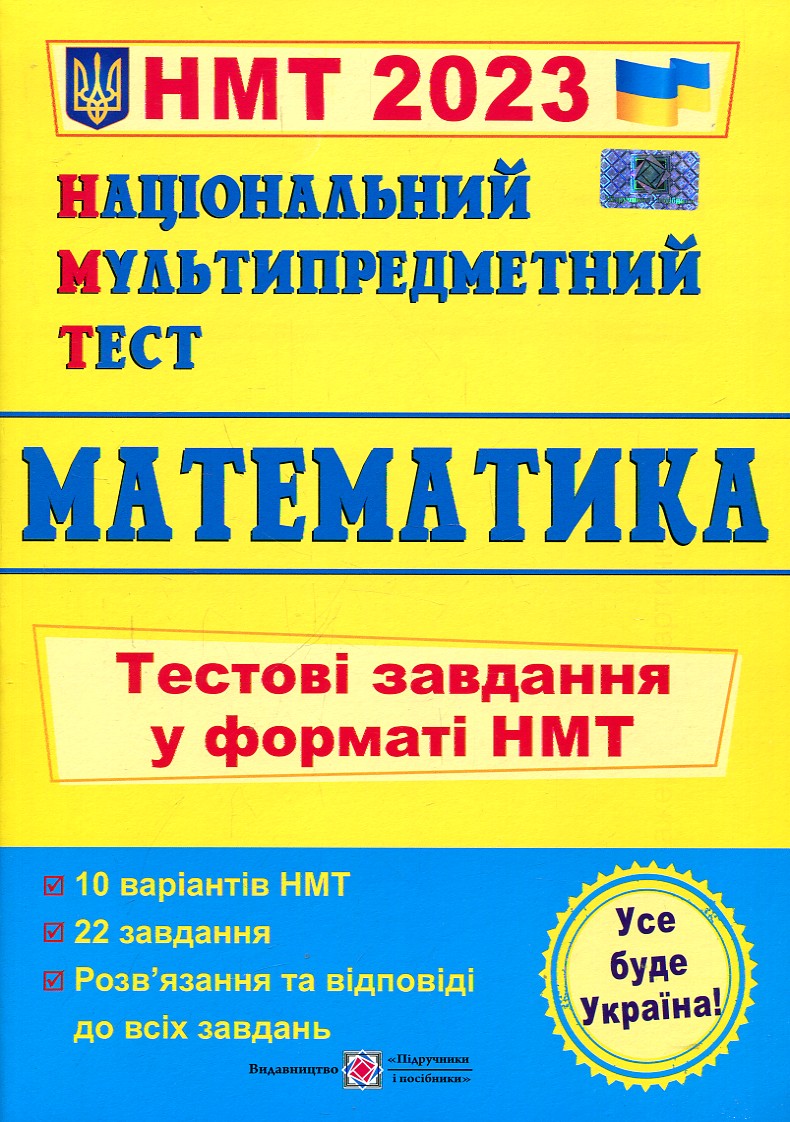 Посібник уміщує 10 орієнтовних варіантів національного мультипредметного тесту (НМТ) з математики. Кожен варіант складається з 22 тестових завдань. Зміст завдань відповідає вимогам Програми зовнішнього незалежного оцінювання, затвердженої МОН України.