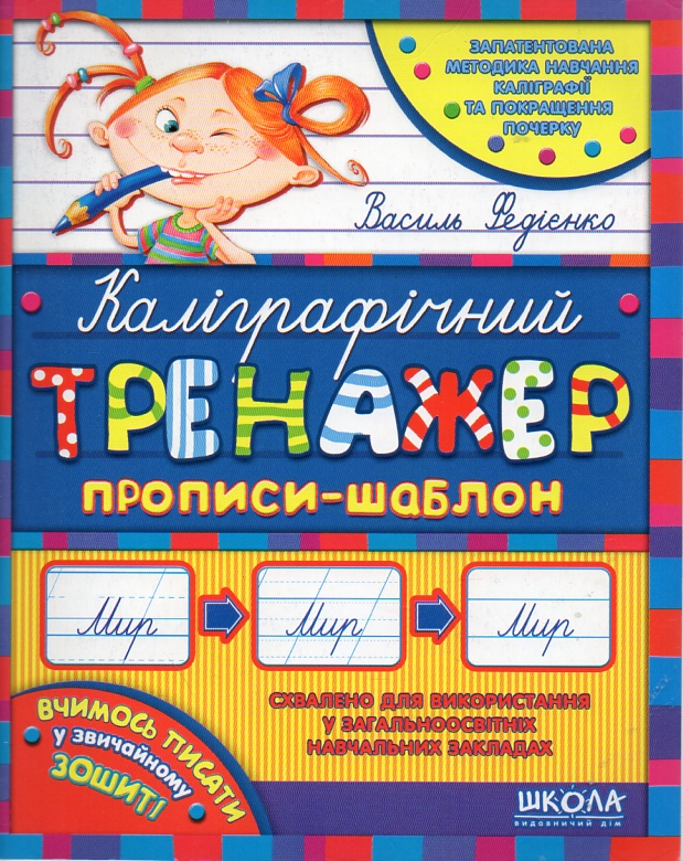 Саме для того, щоб запобігти такій ситуації, створено цей унікальний каліграфічний тренажер. Відмінною його рисою є використання запатентованих графічних сіток-шаблонів та різноманітних графічних вправ. Працюючи за нашим зошитом, дитина зможе стандартизувати написання та поєднання буквених елементів, навчиться дотримуватися однакового нахилу букв та відстані між словами.