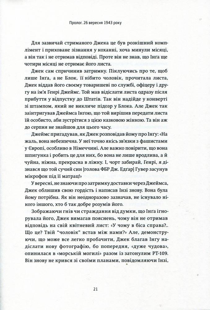 Ідеальна нордична красуня - так її назвав Адольф Гітлер під час візиту до Німеччини. А також актриса, журналістка, володарка звання Міс Данія та головного кохання Джона Кеннеді, яка привернула пильну увагу ФБР за підозру у шпигунстві - біографії Інґи Арвад вистачило б на кілька пригодницьких книг. Про цю жінку Скотт Ферріс написав лише одну книгу, але в ній є місце війні, інтригам і змовам, запаморочливим пригодам і драматичним романам, а в кінцевому підсумку - усьому буремному ХХ століттю. Книга Інґа - біографія жінки, яка вписала своє імя в історію руками видатних особистостей. Інґа Арвад заслуговує не меншої уваги, ніж всі чоловіки, за спинами яких вона стояла - тридцять пятого президента США, угорського режисера і антрополога, єгипетського аристократа, голлівудського актора та багатьох інших яскравих представників ХХ століття. Скотт Ферріс - американський письменник, біограф. Як політичний оглядач United Press International, взяв інтервю у більшості представників політичної арени, які претендували на посаду президента США протягом тридцяти років. Його роботи друкувалися у виданнях The New York Times, Washington Post і Wall Street Journal.
