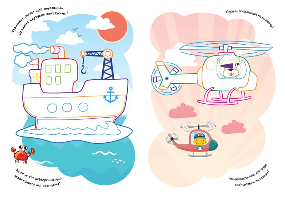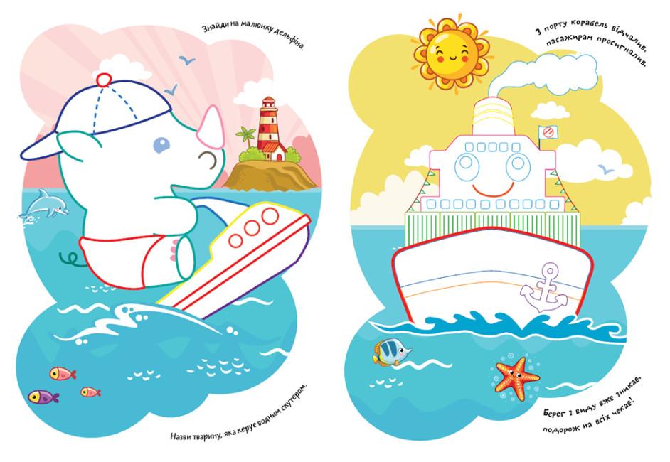 Книжки-розмальовки цієї серії містять чудові малюнки з кольоровим контуром, що є підказкою для дитини під час вибору фарб. Гарні ілюстрації з перших хвилин привертають увагу малюка і дарують йому позитивні емоції та гарний настрій! У процесі розфарбовування малеча навчиться розпізнавати кольори. Також дитині пропонуються цікаві завдання і віршики, що сприяють її розвиткові.